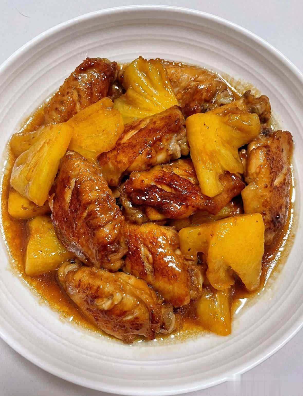 6.最后大火收汁即可。鸡翅香甜,带着菠萝的清新,孩子特别喜欢吃!