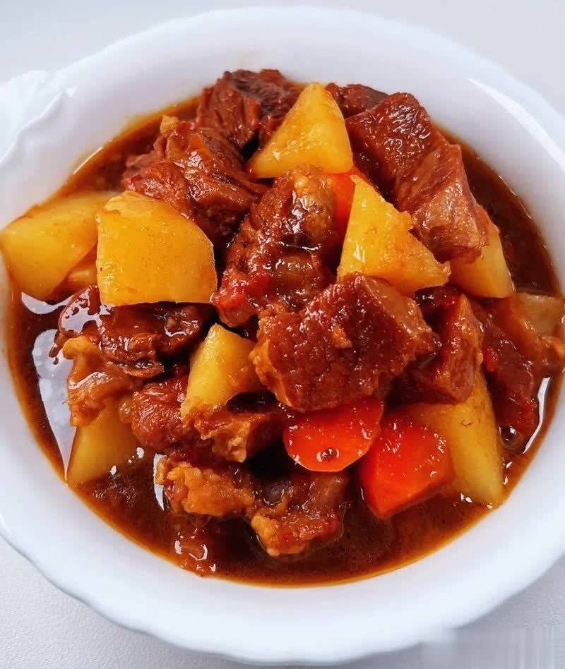 5. 土豆切滚刀块下锅,再炖30分钟至土豆软烂,开大火收浓汤汁即可